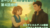 作中ではソフトクリームを手にしたシーンが登場し、食を通じた“ちょっとした幸せ”が丁寧に演出されています。