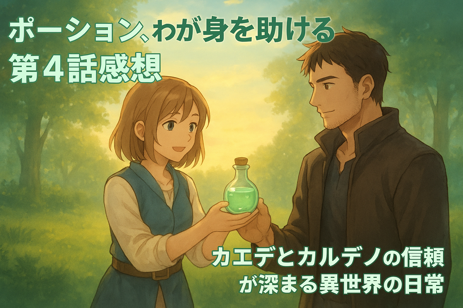 【ポーション、わが身を助ける】第4話感想|カエデとカルデノの信頼が深まる異世界の日常