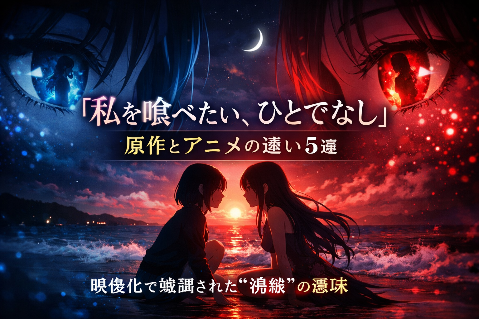この記事では、『私を喰べたい、ひとでなし』の原作とアニメの違いを5つのポイントで比較し、特に“視線表現”がどのように物語の印象を変えているのか考察します。
