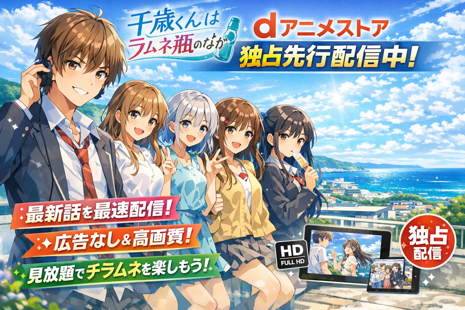 アニメ『千歳くんはラムネ瓶のなか』(通称:チラムネ)は、dアニメストアで独占先行配信中!