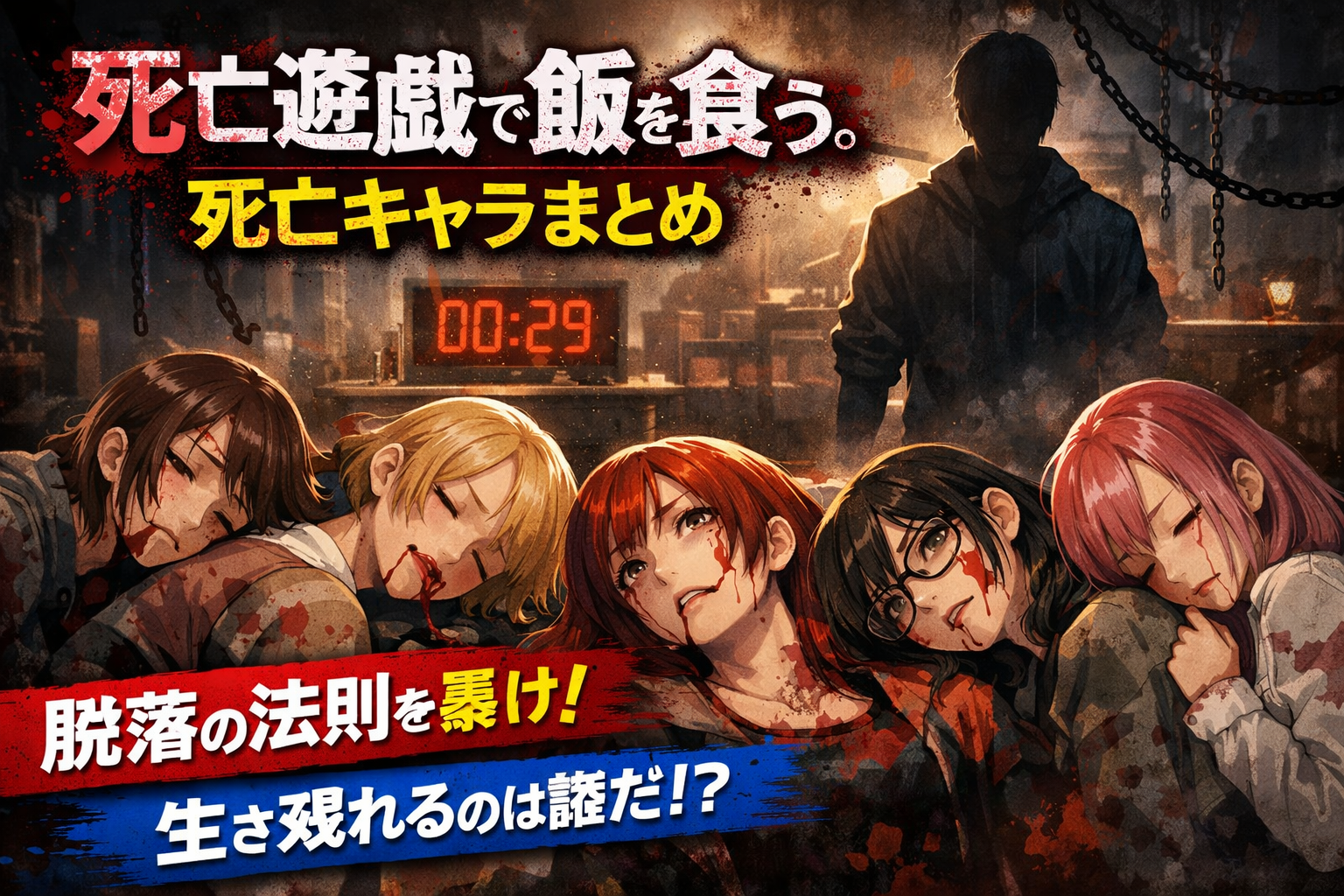 本記事では、死亡遊戯で飯を食う。において、これまでに脱落した死亡キャラを時系列・役割別にまとめています。