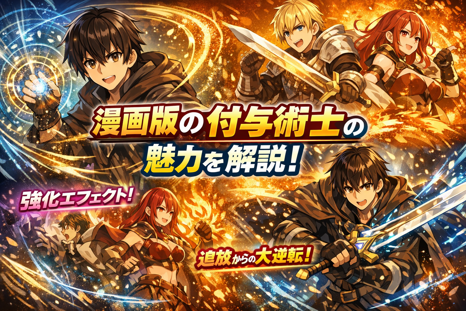 視覚表現を最大限に活かすことで、付与術士という職業の価値が直感的に伝わる構成になっています。