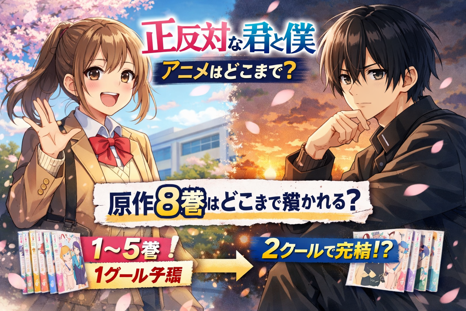 本記事では「正反対な君と僕 アニメはどこまで?原作8巻のどこまで描かれるのか予想考察」というテーマで、話数構成やこれまでの放送ペースから最終話の到達点を徹底予想します。