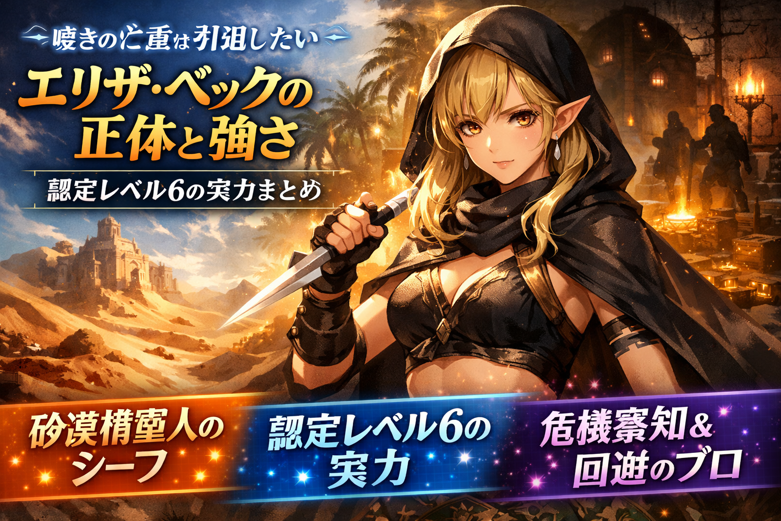 結論として、エリザ・ベックは「正体=砂漠精霊人(ノウブル)の実力派シーフ」であり、「強さ=安定性に特化した認定レベル6」というキャラクターです。