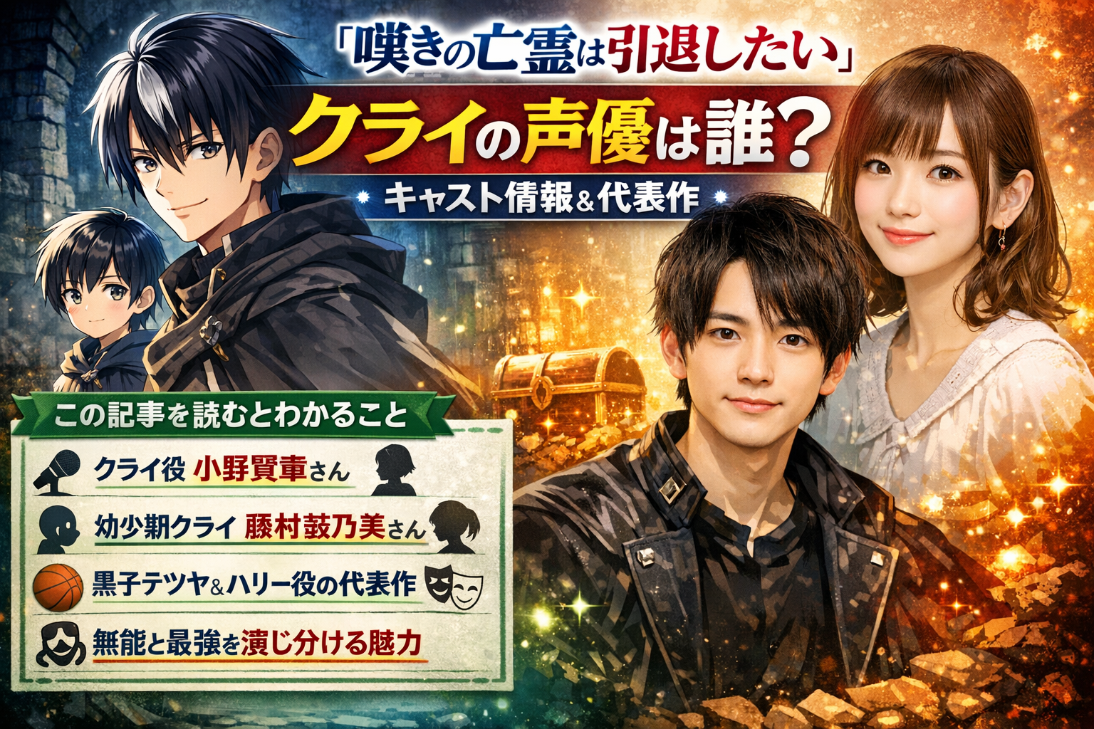 『嘆きの亡霊は引退したい』クライの声優は誰?キャスト情報と代表作を紹介