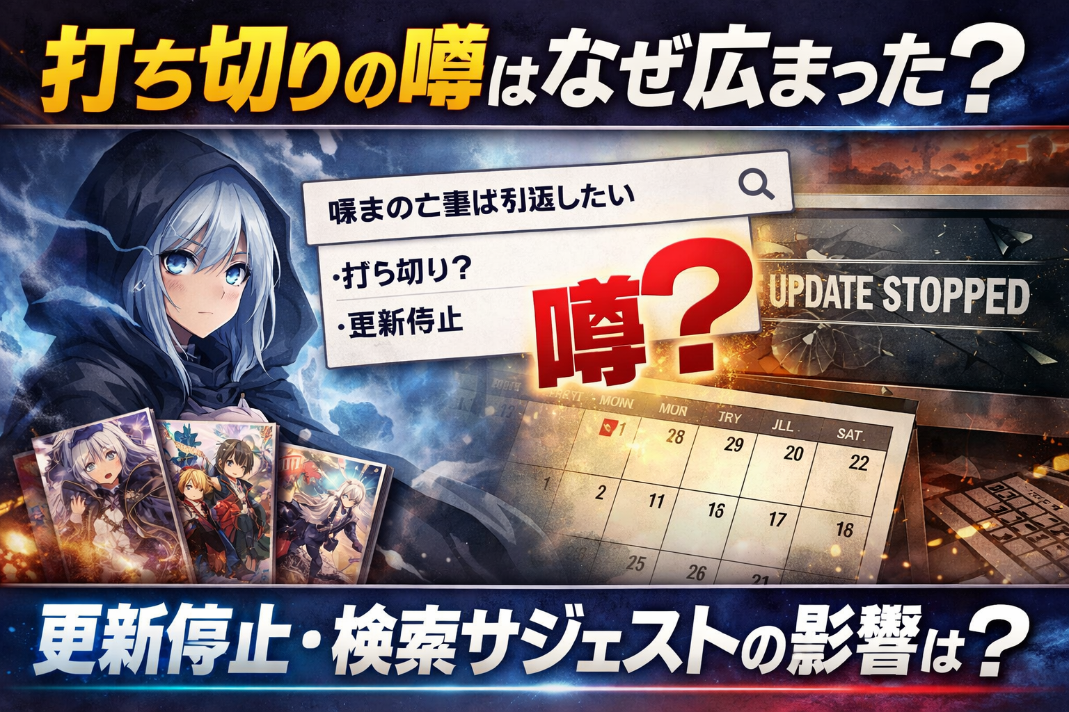 この記事では、嘆きの亡霊は引退したいが打ち切りと噂される理由とは?更新停止や検索候補の影響を解説というテーマで、噂の原因と実際の状況を整理します。