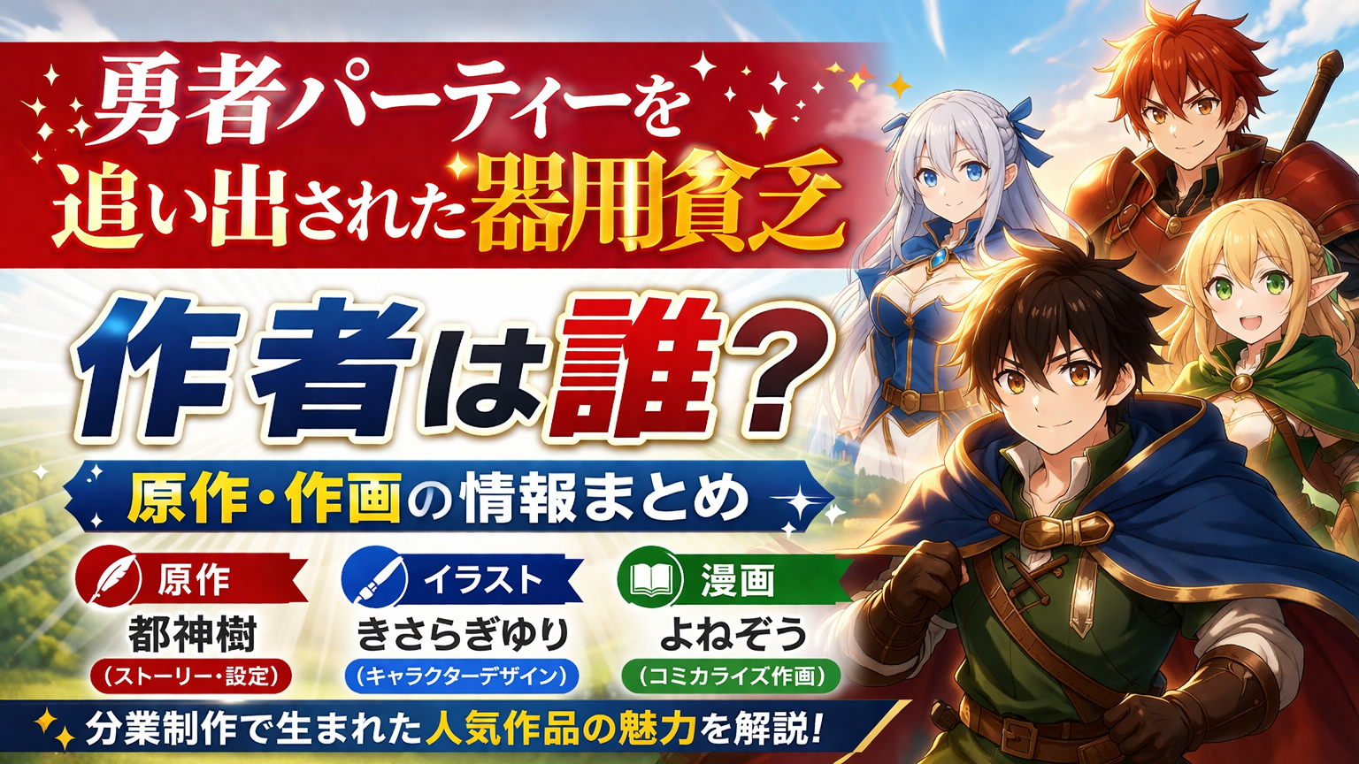 この記事では、勇者パーティーを追い出された器用貧乏の作者は誰?原作・作画の情報まとめというテーマで、原作者・イラストレーター・漫画作画の情報を分かりやすく整理します。
