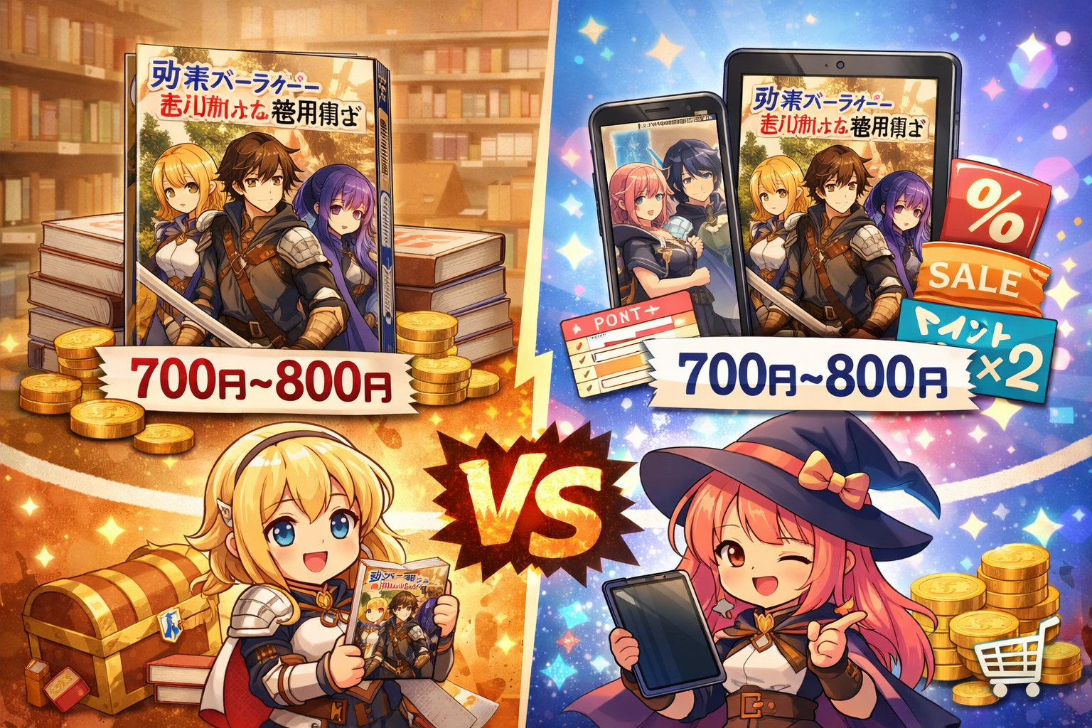 特に電子書籍の場合は、割引やポイント還元によって実質価格が変動するため、単純比較だけでは判断できません。
