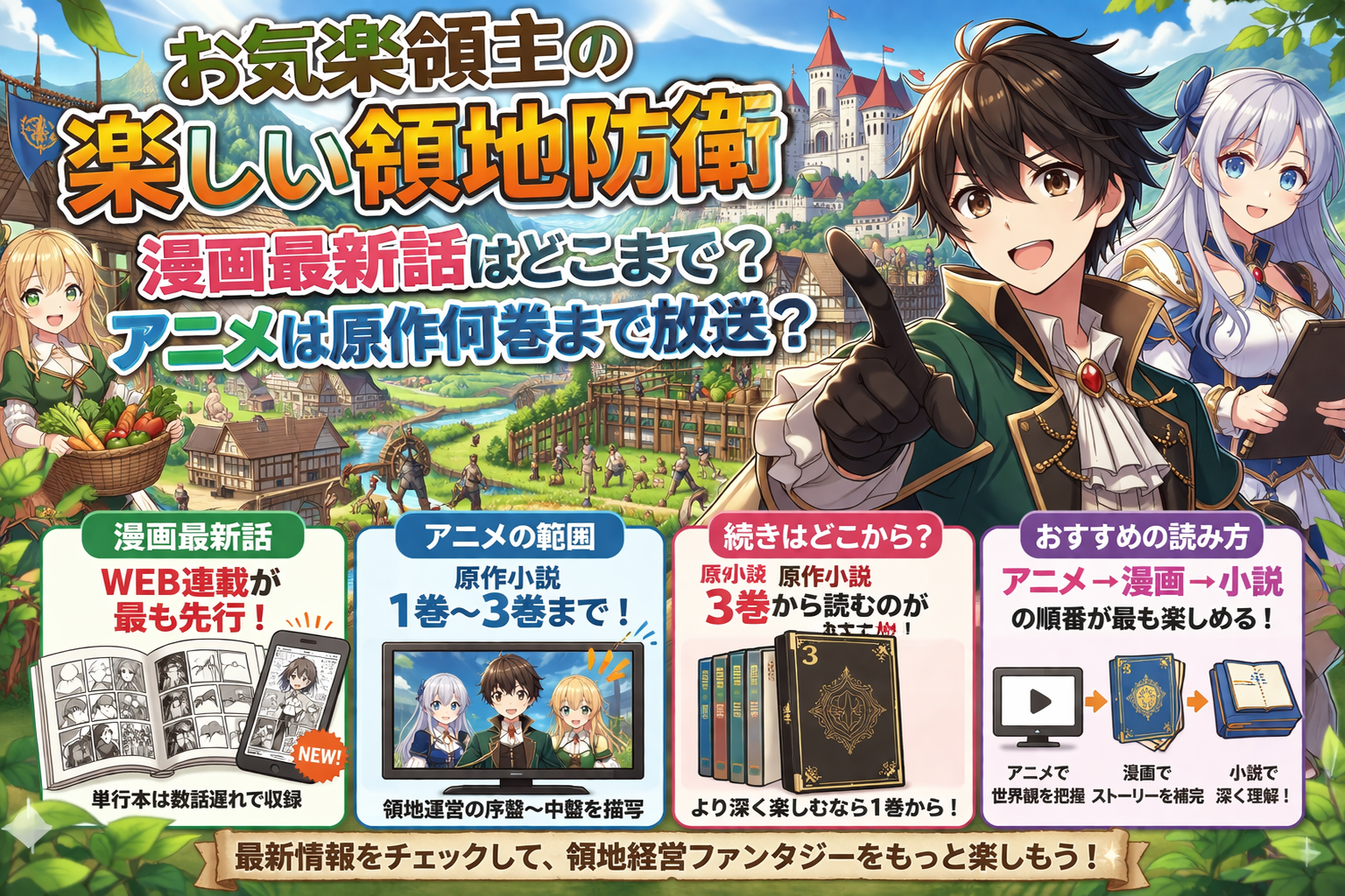 「お気楽領主の楽しい領地防衛 漫画最新話はどこまで?アニメは原作何巻まで放送?」と検索している人は、漫画がどこまで進んでいるのか、アニメが原作のどこまで描かれているのか知りたいのではないでしょうか。