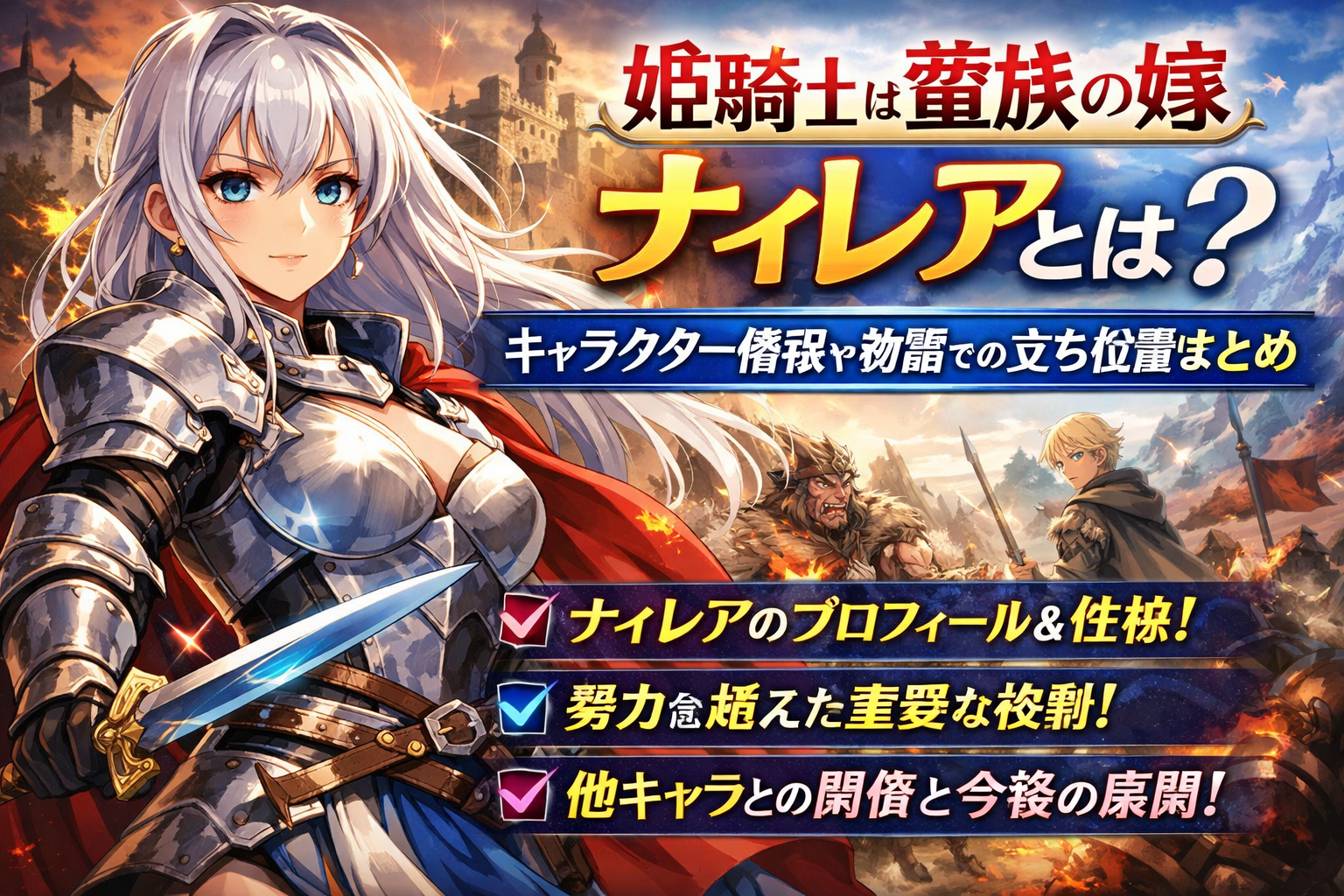 「姫騎士は蛮族の嫁 ナィレアとは?キャラクター情報や物語での立ち位置まとめ」と検索している人は、ナィレアがどんな人物なのか、物語の中でどのような役割を持っているのかを知りたいのではないでしょうか。