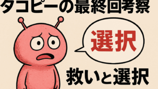 あらすじ紹介 『タコピーの原罪』最終回考察|ハッピー星人タコピーの選択と救いの有無 『タコピーの原罪』最終回は、物語全体のテーマが凝縮された衝撃的な展開で幕を閉じました。ハッピー星人であるタコピーが下した「選択」は、作品を読み進めてきた読者にとって最大の関心事であり、その意味をどう解釈するかが大きなポイントとなっています。... 2025.09.13 あらすじ紹介