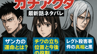 あらすじ紹介 ガチアクタ最新話ネタバレ|ザンカやチワの運命、犯人の真相を解説 『ガチアクタ』の最新話では、ザンカやチワといった主要キャラの運命、そして物語の核心に迫る犯人の真相が大きな話題となっています。これまで伏線として描かれてきた要素が回収されつつあり、ファンの間でも「誰が真犯人なのか」「キャラの生死はどうなるの... 2025.09.25 あらすじ紹介