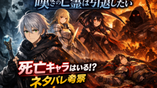 『嘆きの亡霊は引退したい』は、シリアスな戦闘や国家規模の事件が描かれるファンタジー作品です。そのため「主要キャラは死亡するの?」「原作では誰か退場している?」と気になる方も多いのではないでしょうか。本記事では、原作小説およびアニメの展開をも...