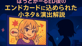 OP・ED曲関連 ばっどがーるED後のエンドカードに隠された小ネタ&演出解説 アニメ「ばっどがーる」の各話を締めくくるED後のエンドカードには、イラストレーターの遊び心や作品の世界観を深める小ネタが数多く隠されています。普段は見られないキャラクターの表情や仕草、物語の伏線を感じさせる演出など、ファンなら見逃せないポイ... 2025.09.06 OP・ED曲関連